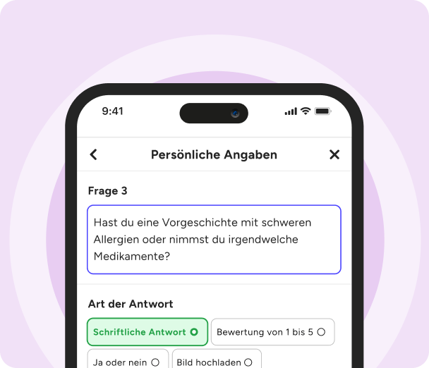 Verwalte deine Fragebögen und Allergie-Tests ohne zusätzlichen Papierkram.