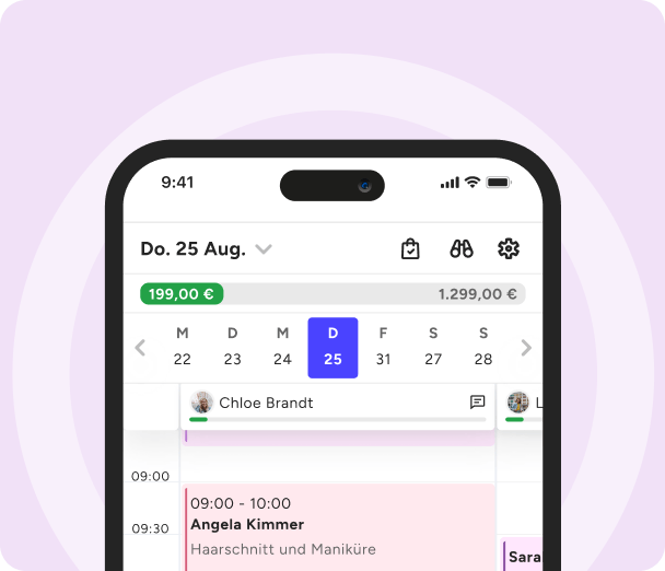 Egal, ob du alleine arbeitest oder ein ganzes Salonteam leitest, mit deinem anpassbaren Zeitplan kannst du deinen Tag ganz einfach optimieren.